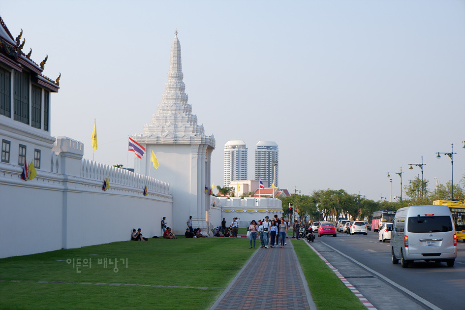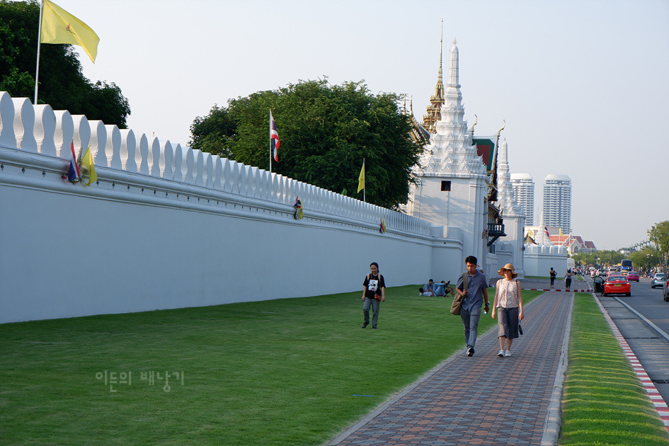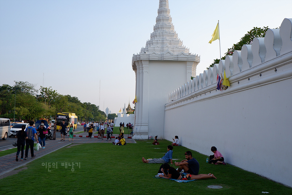 왕궁 담벼락 앞에서 유유자적 여행객들