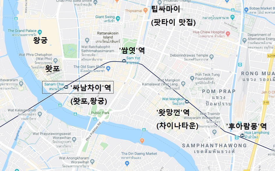 위 지도의 MRT 싸남차이역에 하차해서 1번 출구로 나가면 된다.